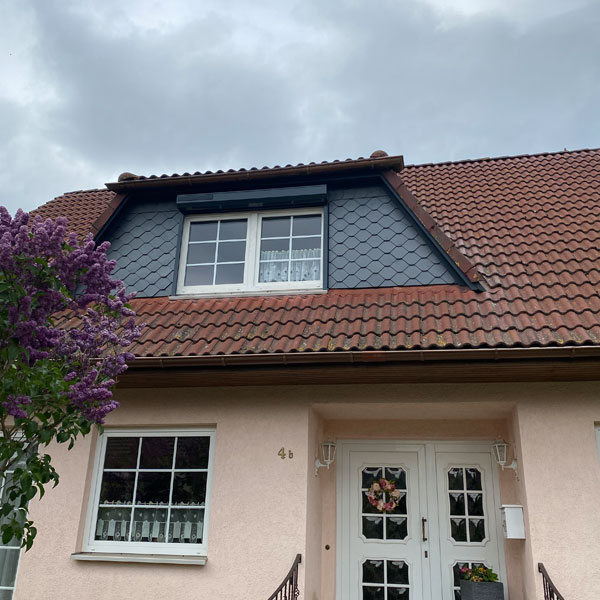 Montage eines Vorbaurolladen an der Dachgaube. Produkt: Heroal Vorbaurollladen (Eckig 45°) in anthrazit (RAL 7016) Kundenwunsch: Beschattung und Verdunkelung Problematik: Gaubenverkleidung am Fensterelement, kein Elektroanschluss im Bereich des Drempels Lösung: Vorbaurolladen mit Funk-Solarantrieb (Simu) Unsere Leistung: Anpassen der Führungen an Gaubenlaibung Montage des Vorbaurolladen Verkleidung der Übergänge mit Winkelprofil [...]